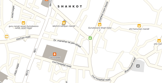 Shahkot (Punjabi: ਸ਼ਾਹਕੋਟ, Hindi: शाहकोट) is a small city near District Jalandhar, State Punjab, Country India. Shahkot is located on the Jalandhar - Moga Road which is National Highway NH71. Shahkot City is administrated by the Nagar Panchayat Shahkot. The town is surrounded by many small and big villages like "Dhandowal", "Kotla Suraj Mal", "Kakra kalan", "Tut Sher Singh", "Kania Kalan", "Nangal Ambian", "Mianwal", "Nawan Kila" ,"Chakk Bahmanian", "Sandanwal" etc. There are About 250 villages belongs to Shahkot tehsil. It has also large number of Rice Mills in Punjab.